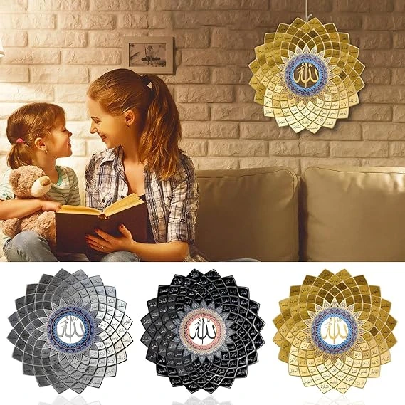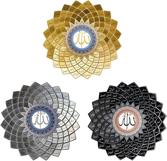 We as Muslims recite the beautiful 99 Names Of Allah (SWT) daily in our Salah for protection, good health, comfort, and wealth. Let this stunning wall art helps you to recite and makes you remember Allah (SWT), creator of everything. Beautiful Islamic Wall Decor help you always remember Allah.