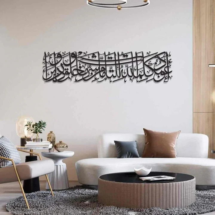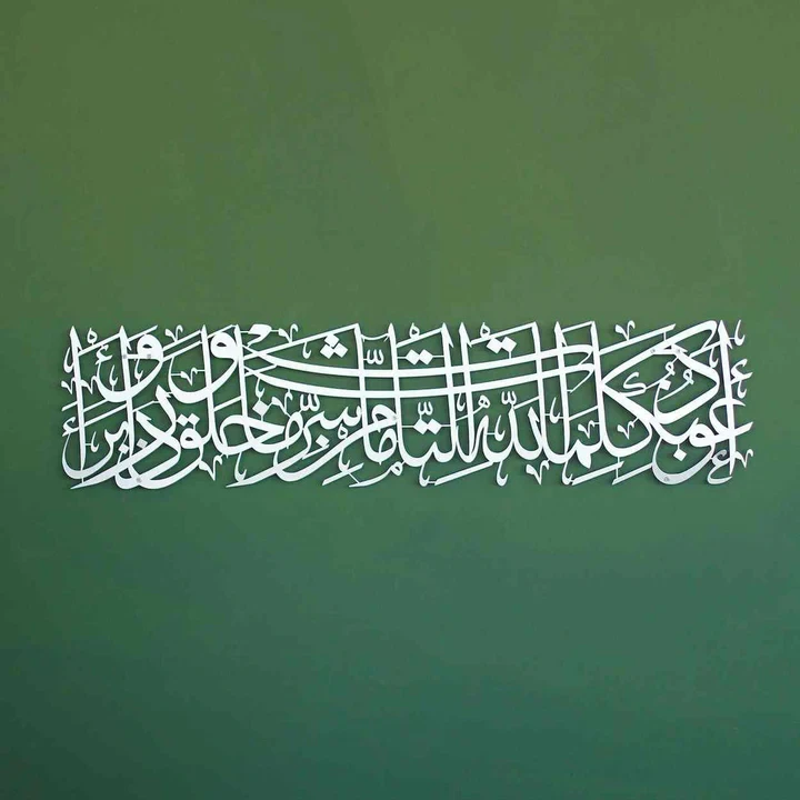 Bring a layer of spiritual protection and elegance to your home with the A Udhu Bikalimati-llahit-Tammati Min Sharri Ma Khalaq Wall Decor. Expertly crafted from high-quality metal, this unique piece features the sacred supplication designed to guard against the evil eye and negative energies. With its sleek horizontal design and sophisticated finish, this decor seamlessly blends into any interior style, providing both spiritual and aesthetic enrichment. Perfect for homes, offices, or prayer spaces, this wall decor is also an ideal choice for Ramadan decor or as a meaningful Islamic gift.