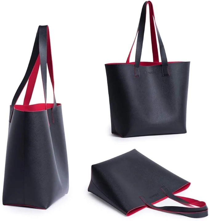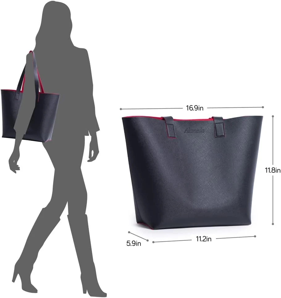 To use the Alameda Carry-All Handbag - Black, simply unzip or open the flap to access the spacious main compartment. The bag is designed with multiple interior pockets to help you organize your essentials, such as your phone, wallet, makeup, keys, and more. The adjustable straps allow you to wear it comfortably on your shoulder or across your body. When not in use, store it in a cool, dry place. To maintain its appearance, clean the exterior with a soft, damp cloth and avoid prolonged exposure to water or direct sunlight.