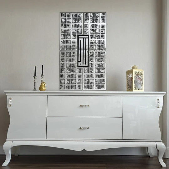 Asma Ul Husna, 99 Names of Allah, Islamic Wall Decor Enhance the beauty and spirituality of your space with this stunning Asma Ul Husna wall decor, featuring the 99 Names of Allah. This elegant piece serves as both a reminder of Allah's divine attributes and a beautiful addition to any room in your home. The 99 names are beautifully arranged in Arabic calligraphy, each name representing a unique characteristic of the Almighty.Crafted with care, this Islamic wall decor offers a profound and meaningful touch to your living room, prayer room, office, or bedroom. It’s not only a decorative piece but also a source of spiritual reflection, offering a continuous reminder of Allah’s mercy, power, wisdom, and love. The timeless design, which blends traditional Arabic calligraphy with modern aesthetic elements, makes it a perfect fit for various interior styles.