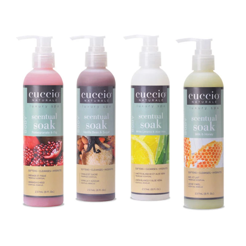 CU Scentual Soak (8 oz) is a luxurious aromatherapeutic soak designed to soften, hydrate, and relax hands, feet, and body. Available in a variety of indulgent scents including Milk & Honey, Pomegranate & Fig, Vanilla Bean & Sugar, and White Limetta & Aloe, each soak delivers spa-like benefits that calm the senses and rejuvenate the skin. Ideal for manicures, pedicures, or full-body relaxation rituals, this soak is enriched with natural moisturizers to promote a silky-smooth finish.
