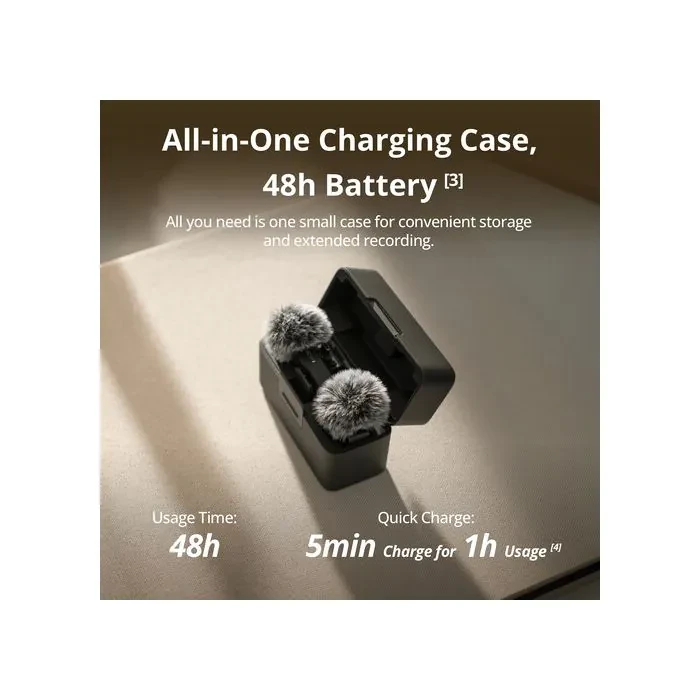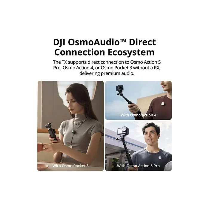 Seamless Integration: Direct connection with DJI OsmoAudio™-compatible devices like Osmo Action 4, Osmo Action 5 Pro, and Osmo Pocket 3.