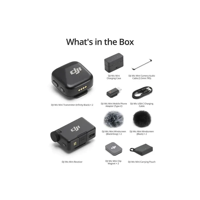 The DJI Mic Mini is a compact and ultralight wireless microphone system designed for content creators, vloggers, and mobile journalists. Weighing just 10 grams per transmitter, it offers high-quality audio capture with a maximum transmission range of up to 400 meters. The system features dual-level active noise cancellation, automatic audio limiting to prevent clipping, and seamless integration with DJI's OsmoAudio™ ecosystem. With a total battery life of up to 48 hours using the charging case, the DJI Mic Mini ensures reliable performance for extended recording sessions