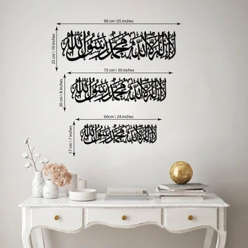 First Kalma Beautiful Acrylic Wall Decoration Piece Bring a sense of peace and spirituality to your home with this First Kalma Beautiful Acrylic Wall Decoration Piece. The First Kalma, which declares the oneness of Allah, is a powerful and essential phrase in Islam, symbolizing the foundation of faith. This acrylic wall decor beautifully showcases the Kalma in elegant Arabic calligraphy, creating a meaningful and inspiring focal point in any room.Crafted from high-quality acrylic, this decorative piece offers a sleek, modern look while maintaining a timeless spiritual significance. The clear, glossy finish of the acrylic enhances the intricate details of the calligraphy, making the First Kalma stand out with clarity and grace. Whether displayed in your living room, prayer space, bedroom, or office, it serves as a constant reminder of your faith and devotion.
