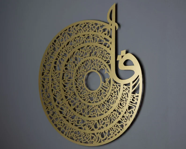 Transform your space with the Four Qul Islamic Wall Art, an exquisite piece that combines intricate calligraphy with modern design elements. This artwork is perfect for those looking to add a touch of spirituality and elegance to their home or office.
