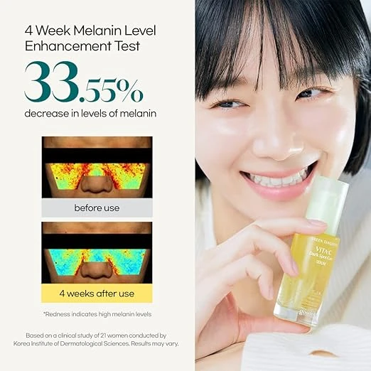 Apply: Dispense an appropriate amount of serum and gently apply it to the entire face, focusing on areas with dark spots or uneven tone.