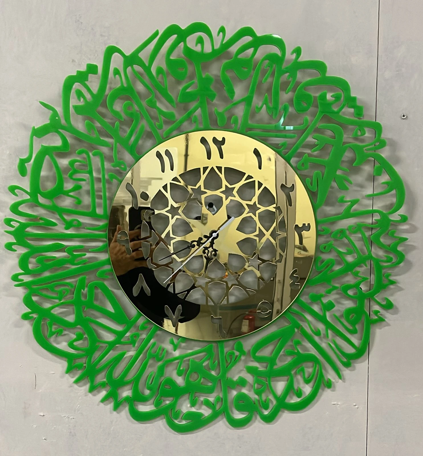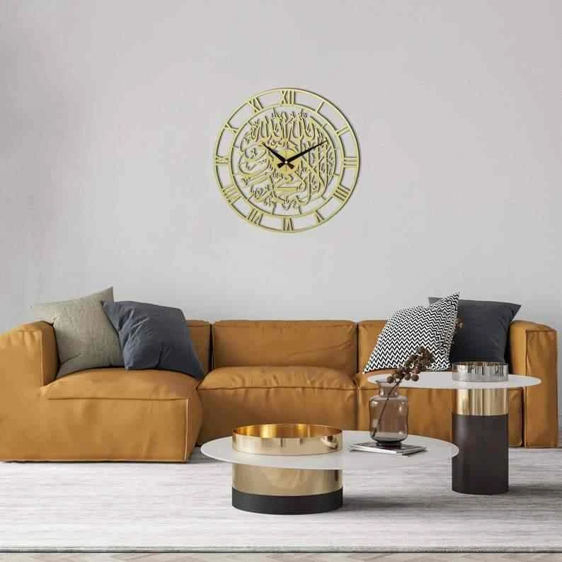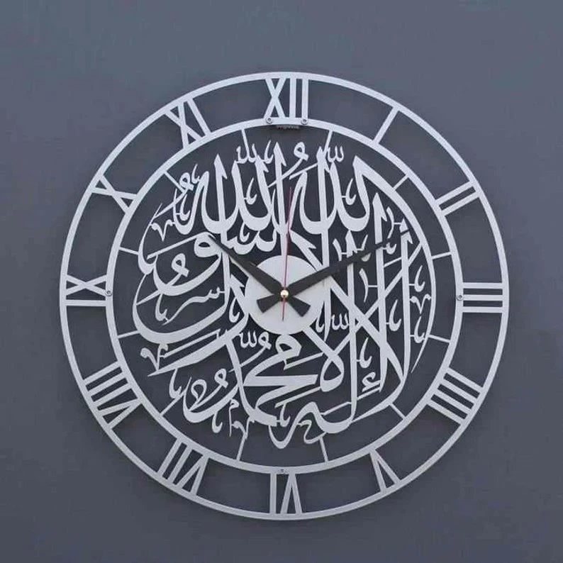 Introducing our stunning Kalma Clock, a perfect fusion of functionality and spiritual elegance. This exquisite timepiece features beautifully crafted Islamic Kalma calligraphy, seamlessly integrated into the clock design. Its artistic detail transforms this clock into a captivating piece of decor that enhances any space.
