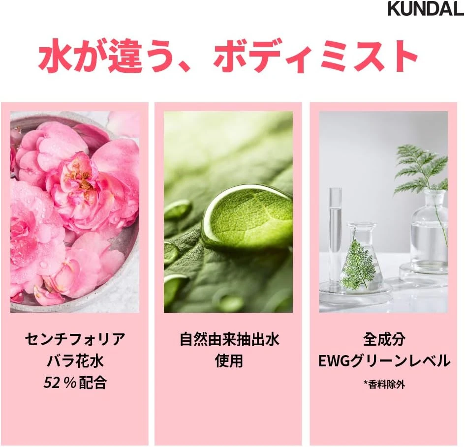 Experience the gentle freshness of KUNDAL Pure Moist Body Mist in Cherry Blossom. Infused with the delicate fragrance of cherry blossoms, this mist provides a refreshing and soothing experience while moisturizing your skin. Its lightweight formula hydrates and envelops you in a soft, floral scent all day long, making it perfect for daily use.