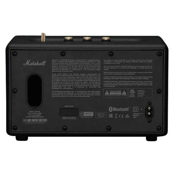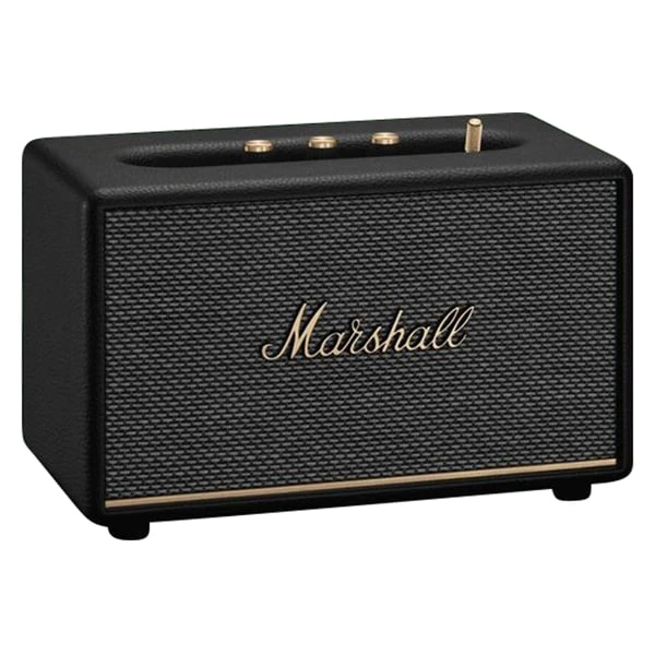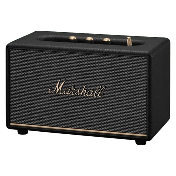 The Marshall Acton III in Black is a compact yet powerful Bluetooth speaker that delivers rich, immersive sound. Equipped with Bluetooth 5.2 technology, it allows seamless wireless connectivity, while the 3.5 mm input offers a wired option. Its classic Marshall design, featuring a textured vinyl covering and iconic script logo, adds a touch of vintage style to any space. Despite its small footprint, the Acton III produces a dynamic audio experience, making it a versatile addition to your home audio setup.