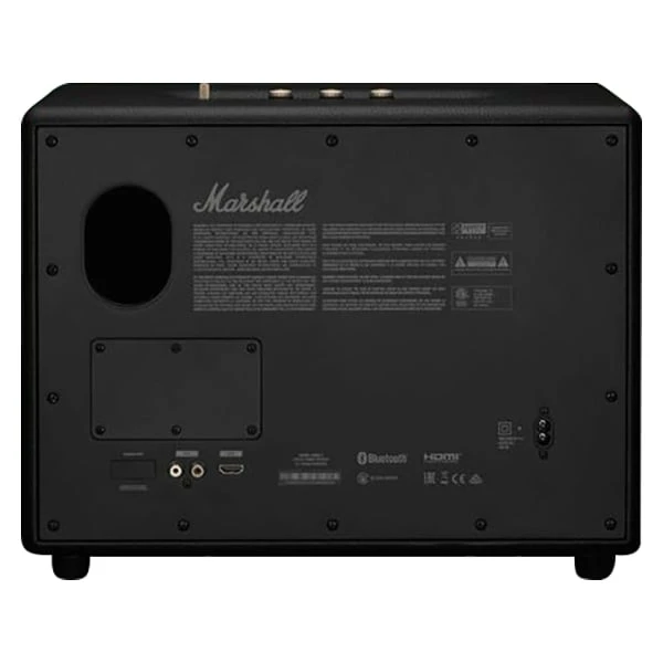 The Marshall Woburn III is a powerful Bluetooth speaker delivering home-shaking sound with a refined vintage design. It features a three-way driver system for exceptional clarity and a wide soundstage. With multiple connectivity options including Bluetooth 5.2, RCA, 3.5 mm, and HDMI inputs, it suits both music lovers and home theater setups.