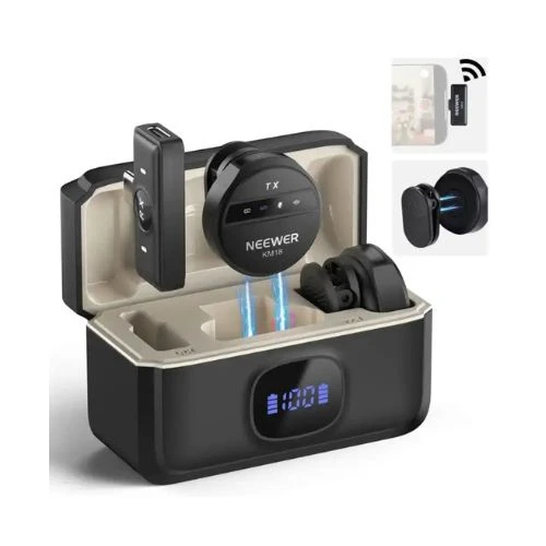 Capture crystal-clear audio with the Neewer KM18 Wireless Button Lavalier Microphone Kit, designed for content creators, interviewers, and presenters. This compact and user-friendly microphone system offers stable wireless transmission, allowing you to record professional-quality sound without the hassle of tangled cables. Its discreet button-style mic ensures a clean look on camera, perfect for video shoots, streaming, or public speaking.