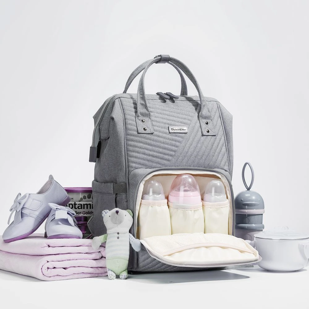 The Sunveno Nova Grey Diaper Bag is your stylish and functional parenting companion. Designed with a minimalist look and smart storage, it helps busy moms and dads stay organized on the go. Featuring multiple compartments, insulated bottle pockets, and a USB charging port, this backpack-style diaper bag keeps all your baby essentials within easy reach. Bonus stroller hooks allow hands-free convenience while traveling or running errands with your little one.