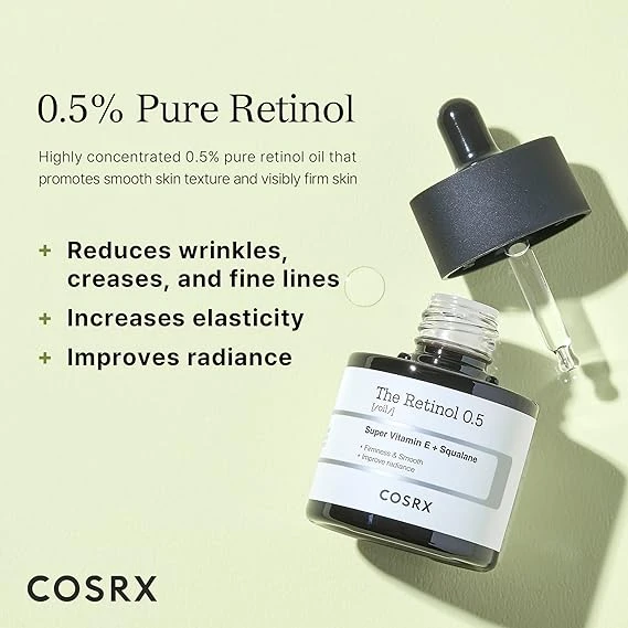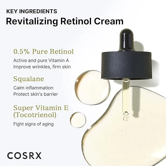 Retinol (0.5%): Encourages skin renewal and improves texture.